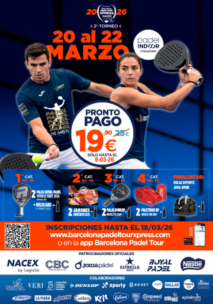 La nueva edición del circuito de pádel patrocinado por NACEX, Barcelona Padel Tour Xpress, ya está en marcha. La segunda prueba se disputará del 20 al 22 de marzo en la provincia de Barcelona y constará de una fase de grupos y eliminatorias.